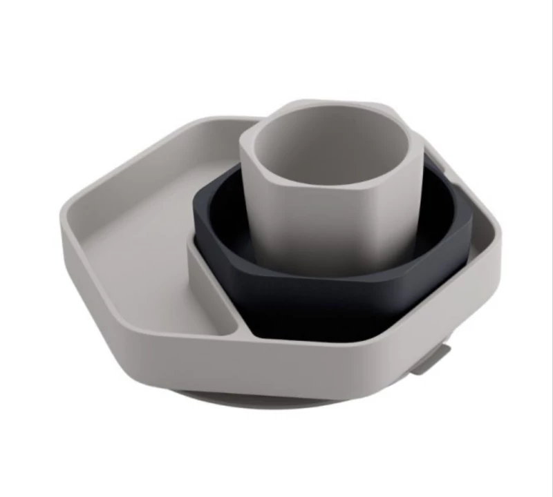 ظرف غذای سه تکه سیلیکونی مشکی برند هی اور شی HE OR SHE