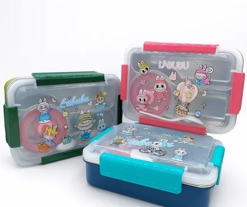 ظرف غذا لبوبو در دو رنگ صورتی و آبی همراه قاشق