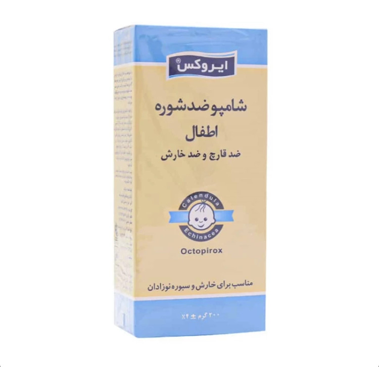 شامپو ضد شوره بچه ایروکس، با دارا بودن ترکیب ایمن پیروکتون اولامین و عصاره های گیاهی ضد التهاب و التیام بخش، ضمن شستشوی ملایم پوست و مو، خارش و التهاب پوست سر، پوسته ریزی و شوره را برطرف می نماید.