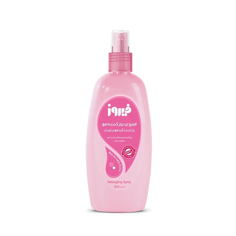 بهترین روش برای راحتتر شانه کردن موهای بلند و مجعد و یا گرهخورده استفاده از محلولهای باز کننده گره مو سر به هنگام شانهزدن می باشد که دارای خاصیت نرم کنندگی و حالت دهندگی می باشند و با ایجاد لایه ای روی تارهای مو باعث جدا شدن آنها از هم و بازشدن آسانتر گره ها می شوند. اسپری گره باز کن مو صورتی فیروز با دارا بودن این ویژگی ها و همچنین خاصیت ویتامینه و درخشان کنندگی مو انتخاب بسیار مناسبی برای شما و کودک دلبنتدتان می باشد. طریقه استفاده از آن بسیار آسان است از همین رو می تواند همواره همراه همیشگی شما باشد. توجه کنید که قبل از استفاده حتما بطری را به خوبی تکان بدهید و سپس با فاصله محلول را به روی موهای خیس یا خشک اسپری کنید. اسپری بازکننده مو صورتی فیروز برای نوزادان و خردسالان فرموله شده است از این رو فاقد الکل می باشد.