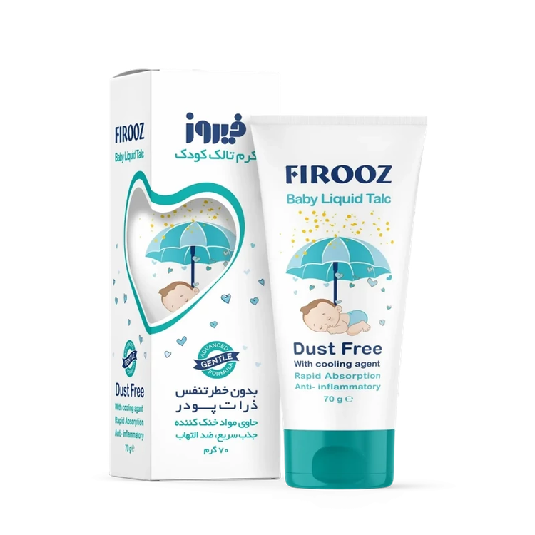 کرم تالک خنککننده، همان پودر بچه فیروز است که مضرات استنشاق پودر را ندارد. این محصول با ایجاد یک لایه بر روی پوست، از اصطکاک پوستی جلوگیری کرده و با جذب رطوبت اضافی مانعی برای عرقسوز شدن پوست حساس کودک میباشد. این محصول شرکت فیروز علاوه بر استفاده برای کودکان برای استفاده بزرگسالان نیز مناسب است. استفادهی مداوم از این کرم، نه تنها از التهاب و قرمزی پوست کودک جلوگیری میکند، بلکه پوست او را نرم و لطیف نگه میدارد.