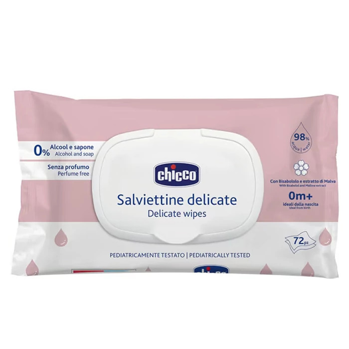 #### دستمال مرطوب 72عددی 98% آب مناسب پوست حساس چیکو اورجینال تهیه شده از بهترين الياف پنبهای حاوی عصاره گل ختمی و فاقد هرگونه مواد مضر(الکل و پارابن و صابون) فاقد هرگونه مواد آلرژی زا برای پوست حساس و لطیف نوزاد و کودک دستمال دولا و ایده آل برای تمیز کردن ناحیه پوشک و همچنین مناسب برای صورت و دیگر نقاط پوست بدن نوزاد