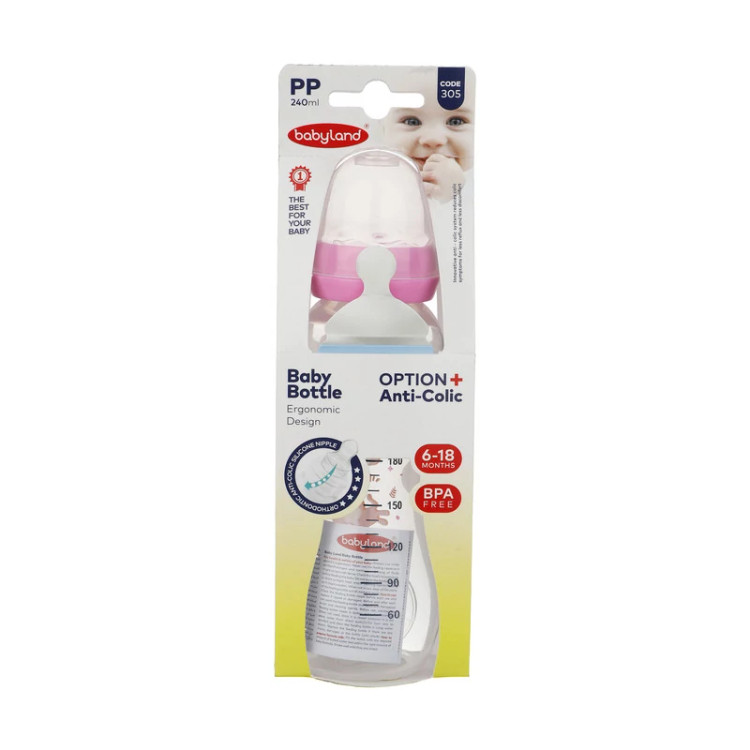 شیشه شیر بیبی لند کد 305 مناسب 6 تا 18 ماه 240 میلی لیتر
